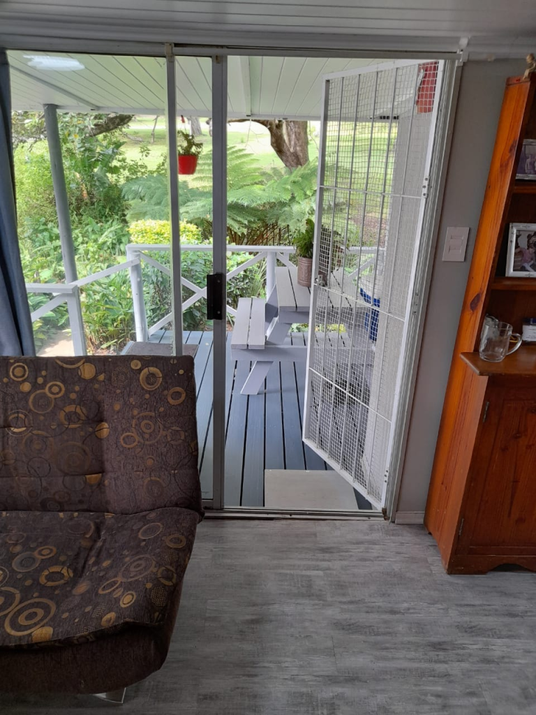 Surrounded by lush greenery, the home sits peacefully beneath the trees, with a sweet veranda leading to a welcoming front entrance. Indoors, warm wood tones, simple furnishings, and soft natural light create a heartfelt atmosphere. The rooms feel grounded and sincere, beautifully expressing the spirit of a cozy home after homelessness.