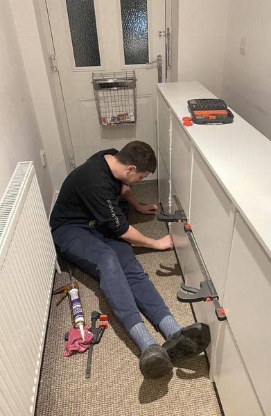 Four IKEA Bissa units were carefully aligned, glued, and reinforced. The seams were filled with wood filler, then sanded and painted until the cabinets appeared as a single, seamless built-in. This approach offers a surprisingly elegant look—one that feels far more custom than its origins might suggest.