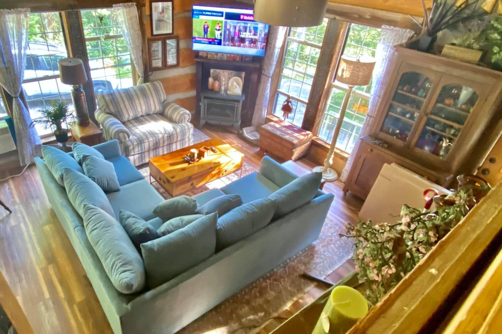 The Rustic Eclectic Log Cabin by Lisa Ann glows with warm wood, mismatched treasures, gleaming copper, and that unmistakable comfort of a life well-lived. Every corner reveals intention: a sunlit kitchen rich with grain and texture, a regal bath adorned with vintage gold, and a living room layered with softness and memory. Nothing feels staged; everything feels true.