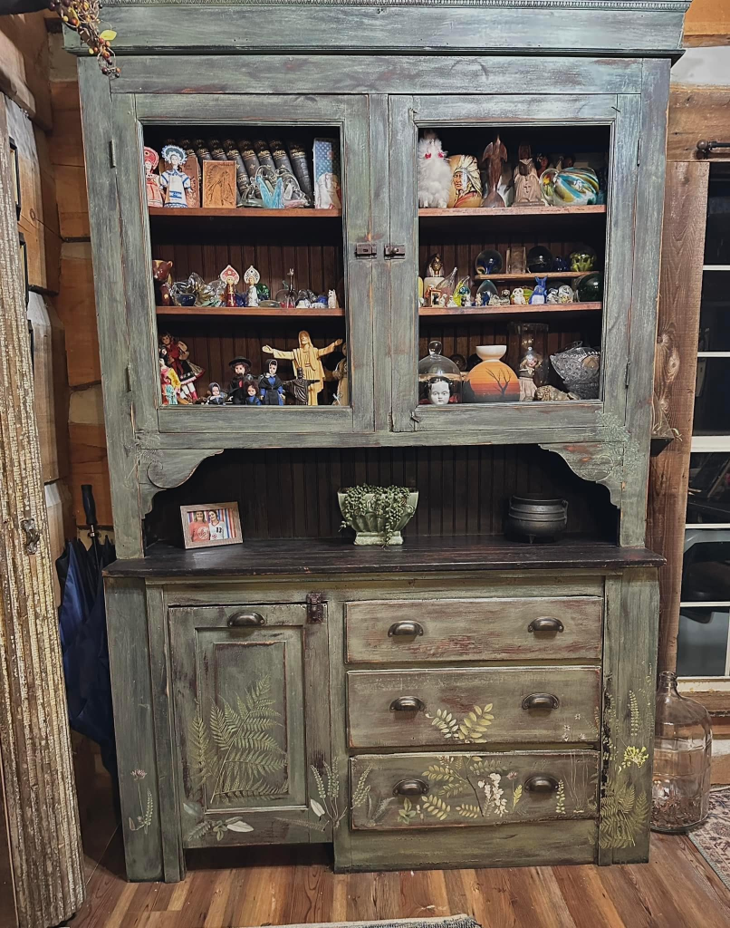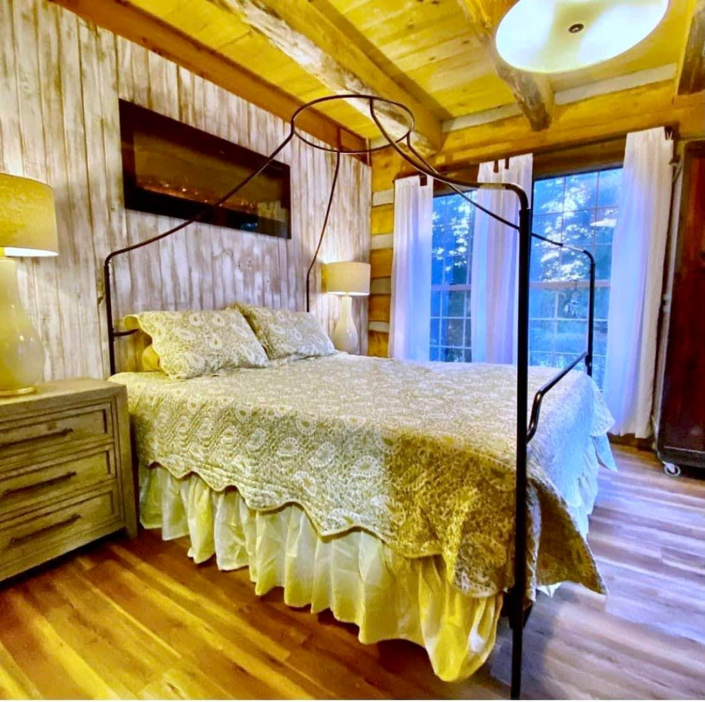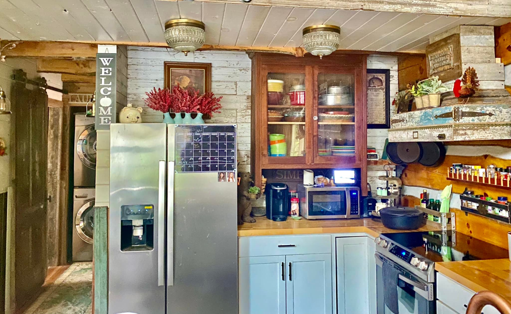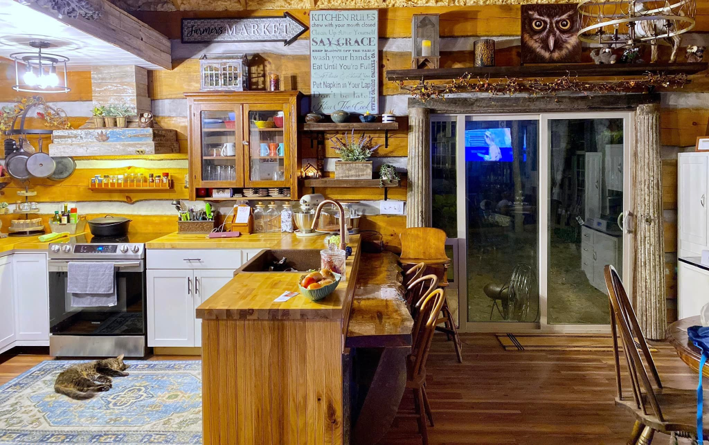 Lisa Ann’s story behind her Rustic Eclectic Log Cabin feels tender, brave, and beautifully human. She speaks of building the cabin herself, filling it only with things she loves—many found through yard sales, thrift shops, marketplace hunts, and even $20 windows from Habitat for Humanity.