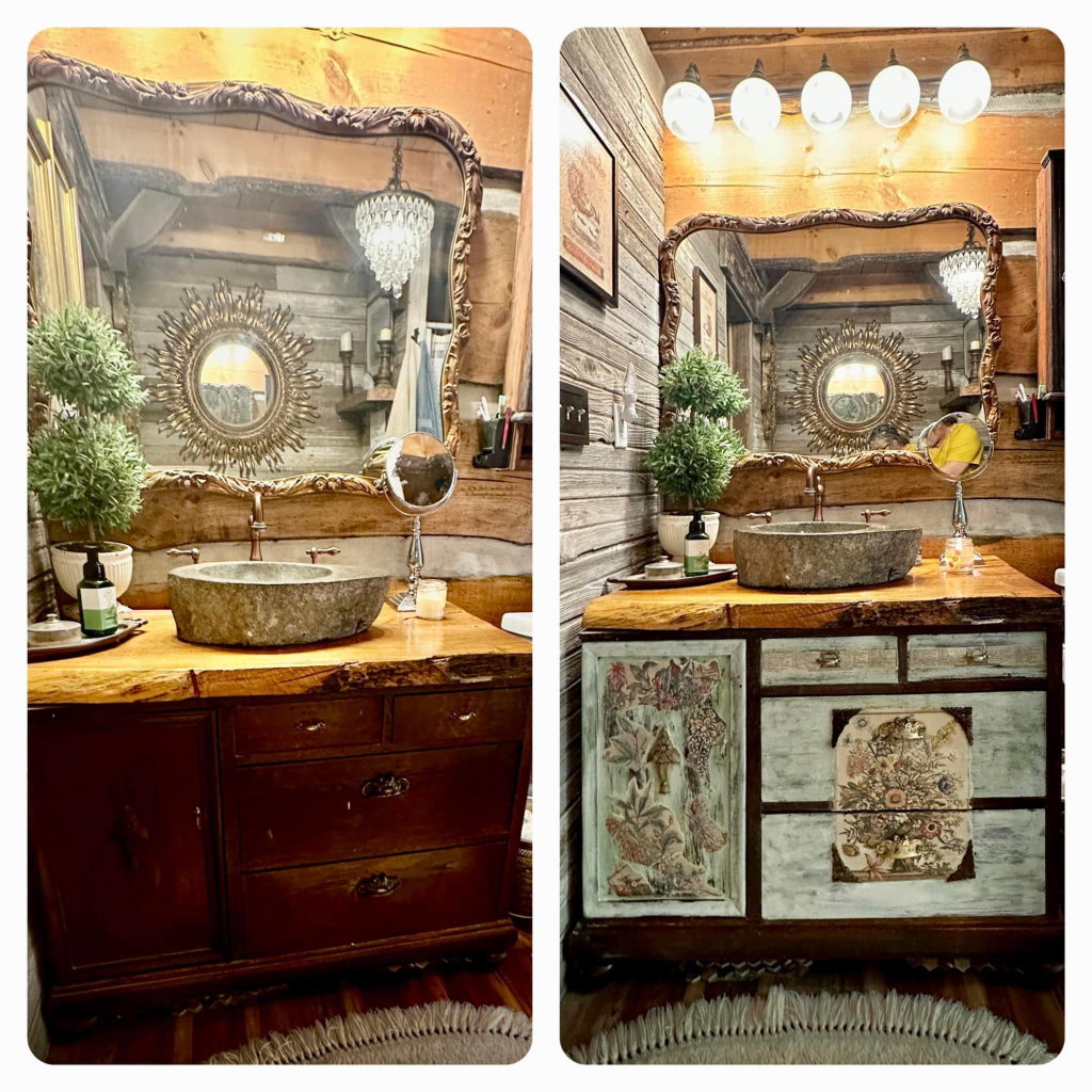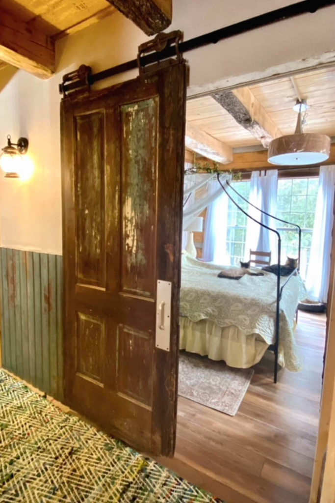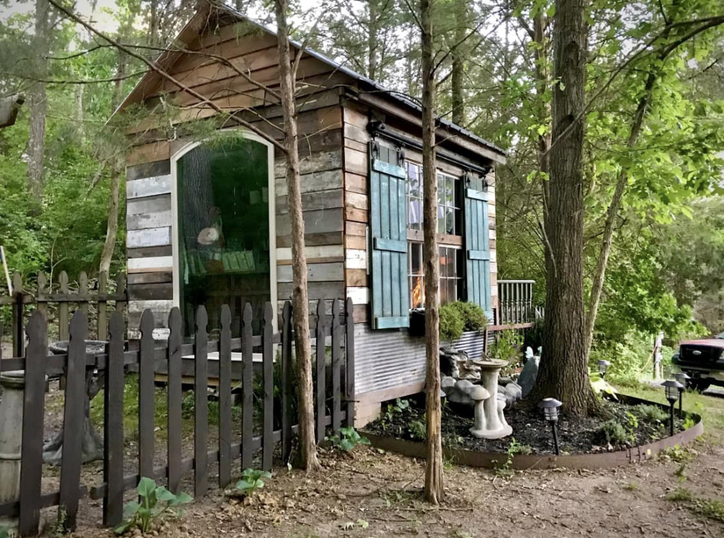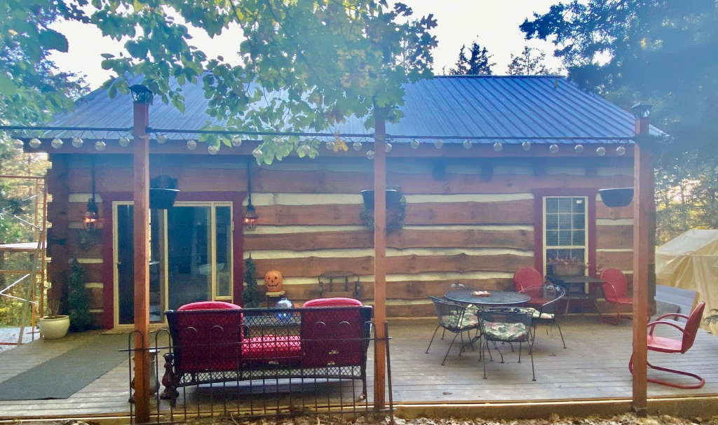 Lisa Ann’s story behind her Rustic Eclectic Log Cabin feels tender, brave, and beautifully human. She speaks of building the cabin herself, filling it only with things she loves—many found through yard sales, thrift shops, marketplace hunts, and even $20 windows from Habitat for Humanity.